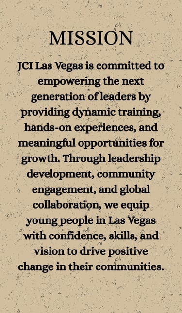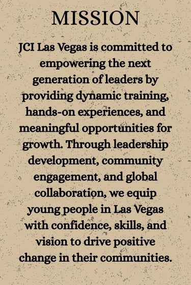 JCI Las Vegas is a premier leadership development organization that empowers young active citizens to become better leaders and create meaningful change in their communities. We are a diverse network of professionals, entrepreneurs, and community builders who believe that true leadership is measured not only by personal success, but by the positive impact we make on others.